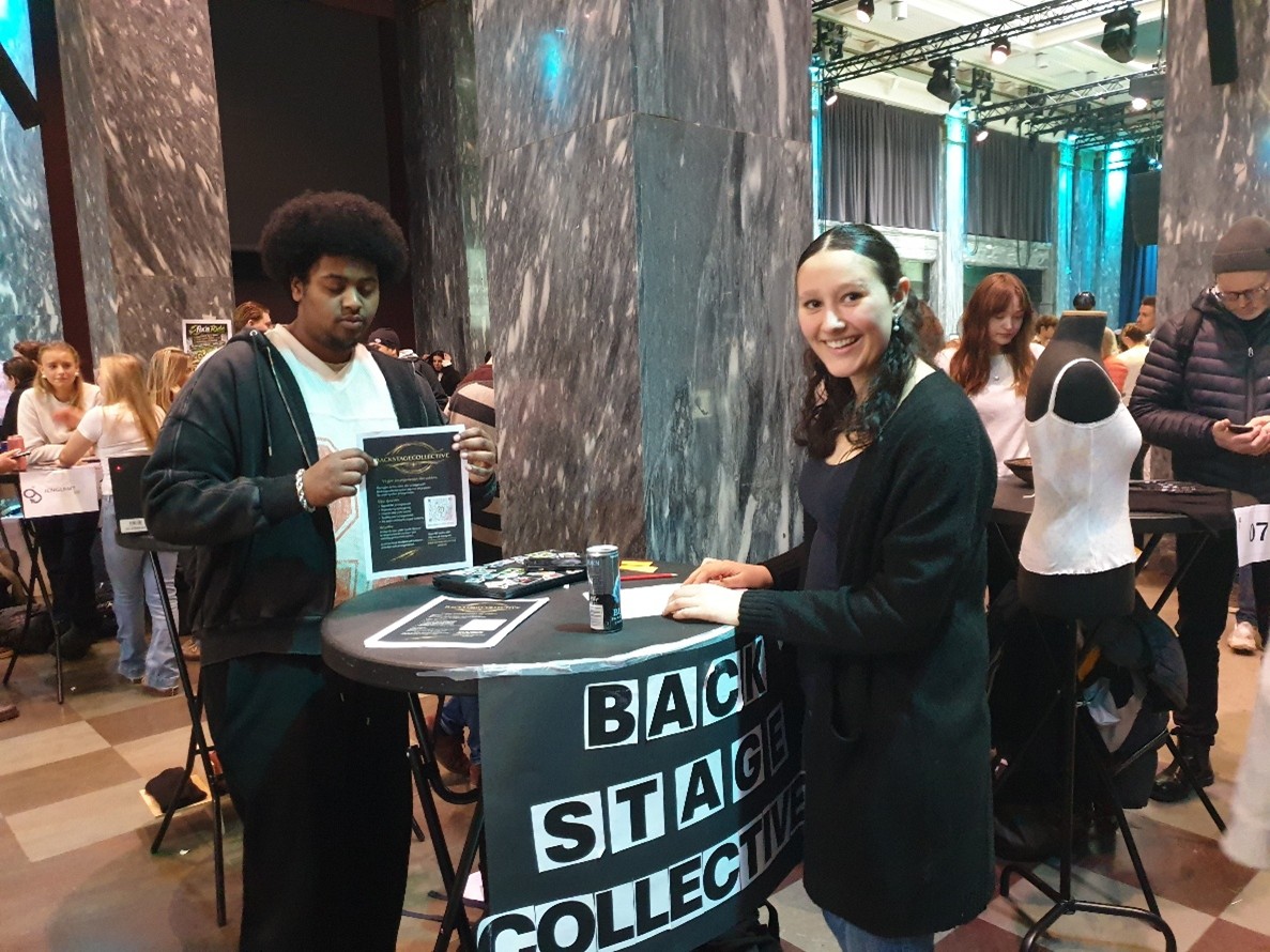 Deler av Back Stage Collective setter opp stand