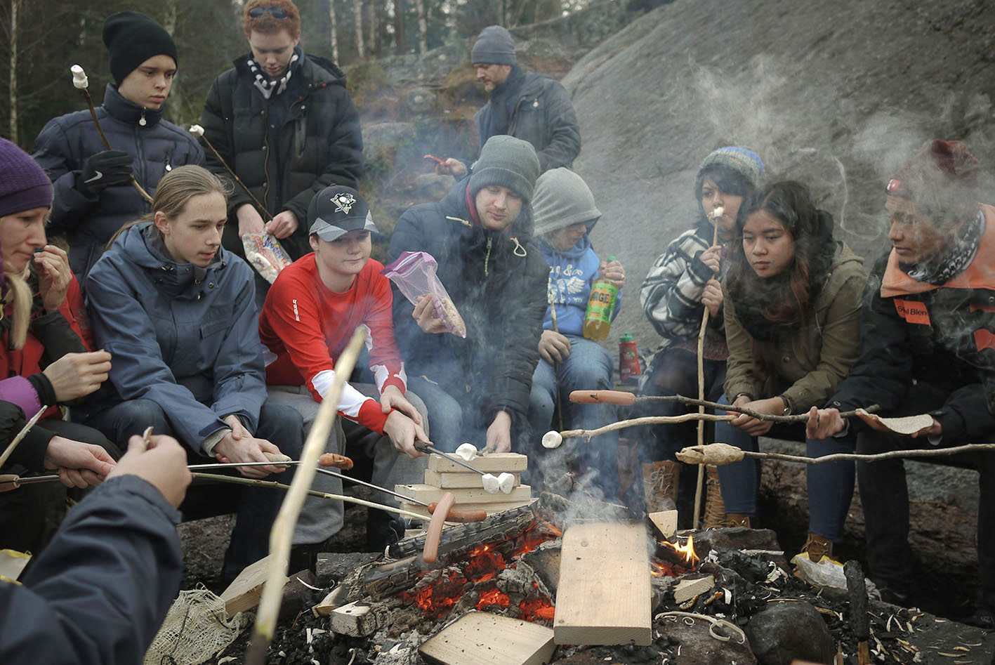 Bildtekst: Pølsestekning under en ekskursjon til Ulsrudvannet.